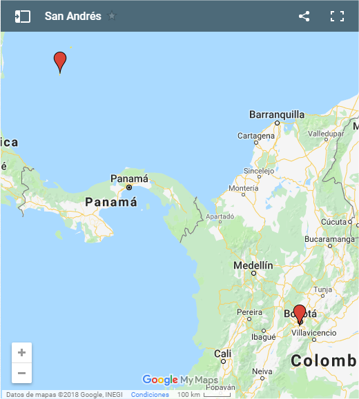 San Andrés está localizado a 80km al suroeste de la Isla de Providencia, 190km al oeste de la costa de Nicaragua en centroamérica, y un poco más de 700km al noroeste de la costa caribe colombiana.